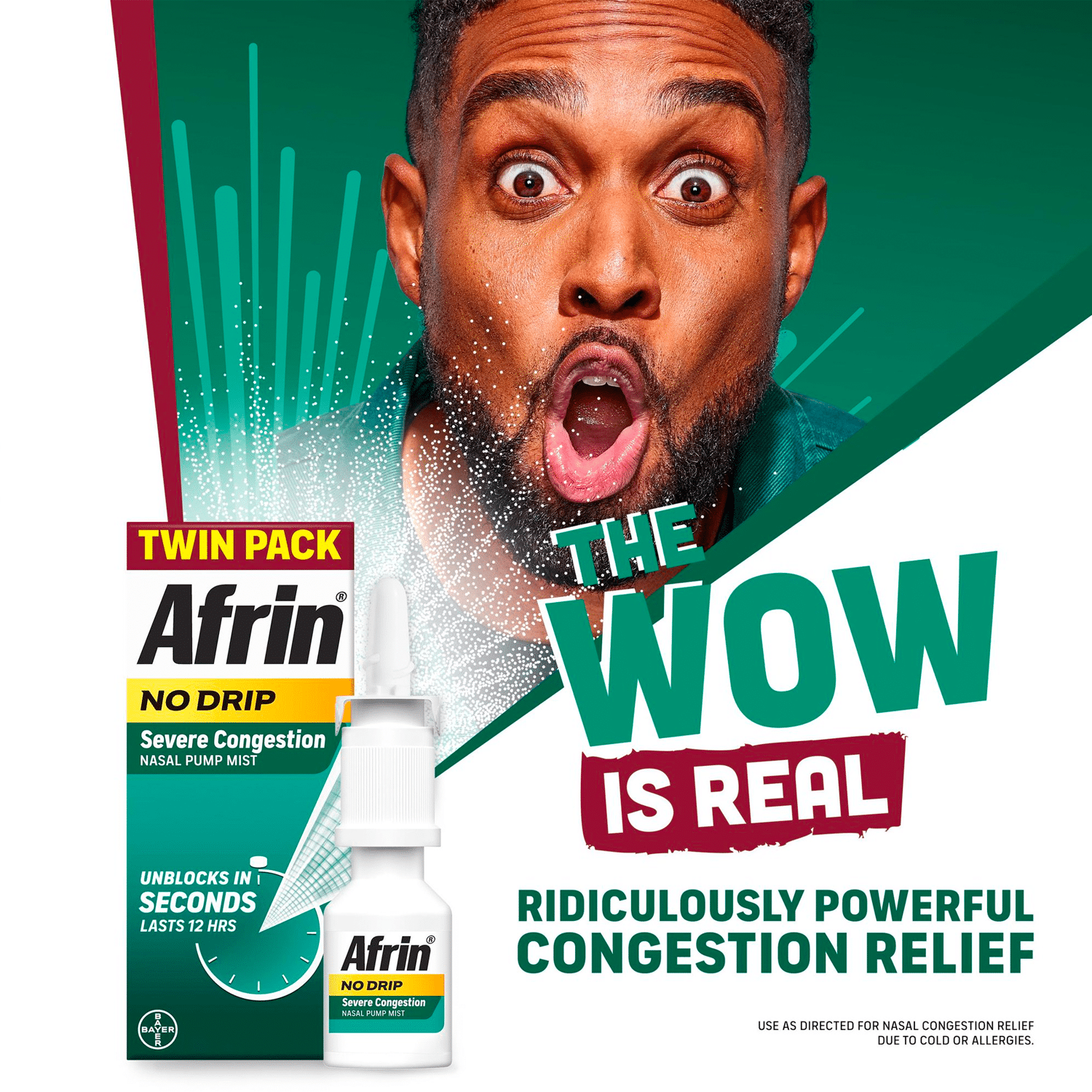 Afrin No Drip Severe Congestion Pump Mist Nasal Spray, 2-15 mL Bottles