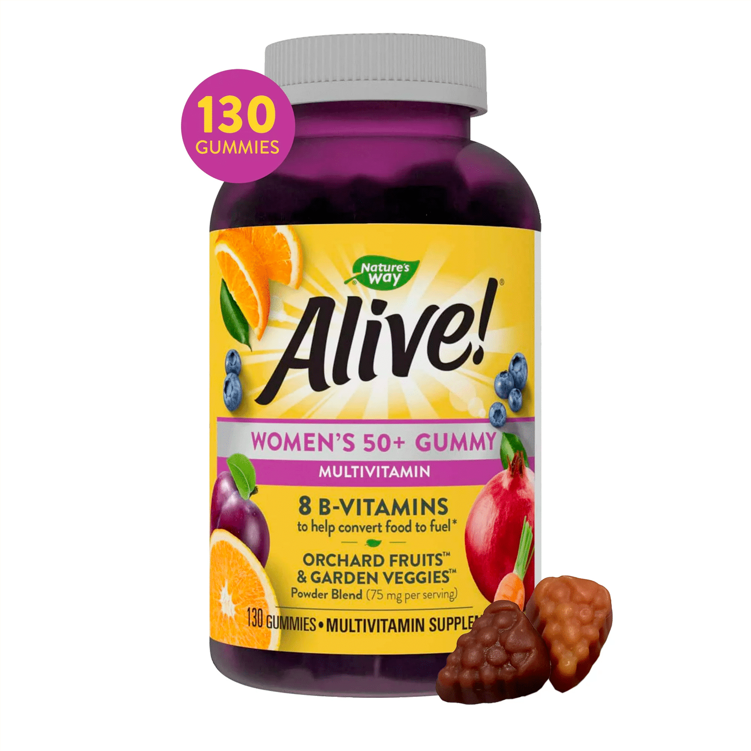 Alive! Women’s 50+ Daily Multivitamin Gummies, Mixed Berry Flavored, 130 Count