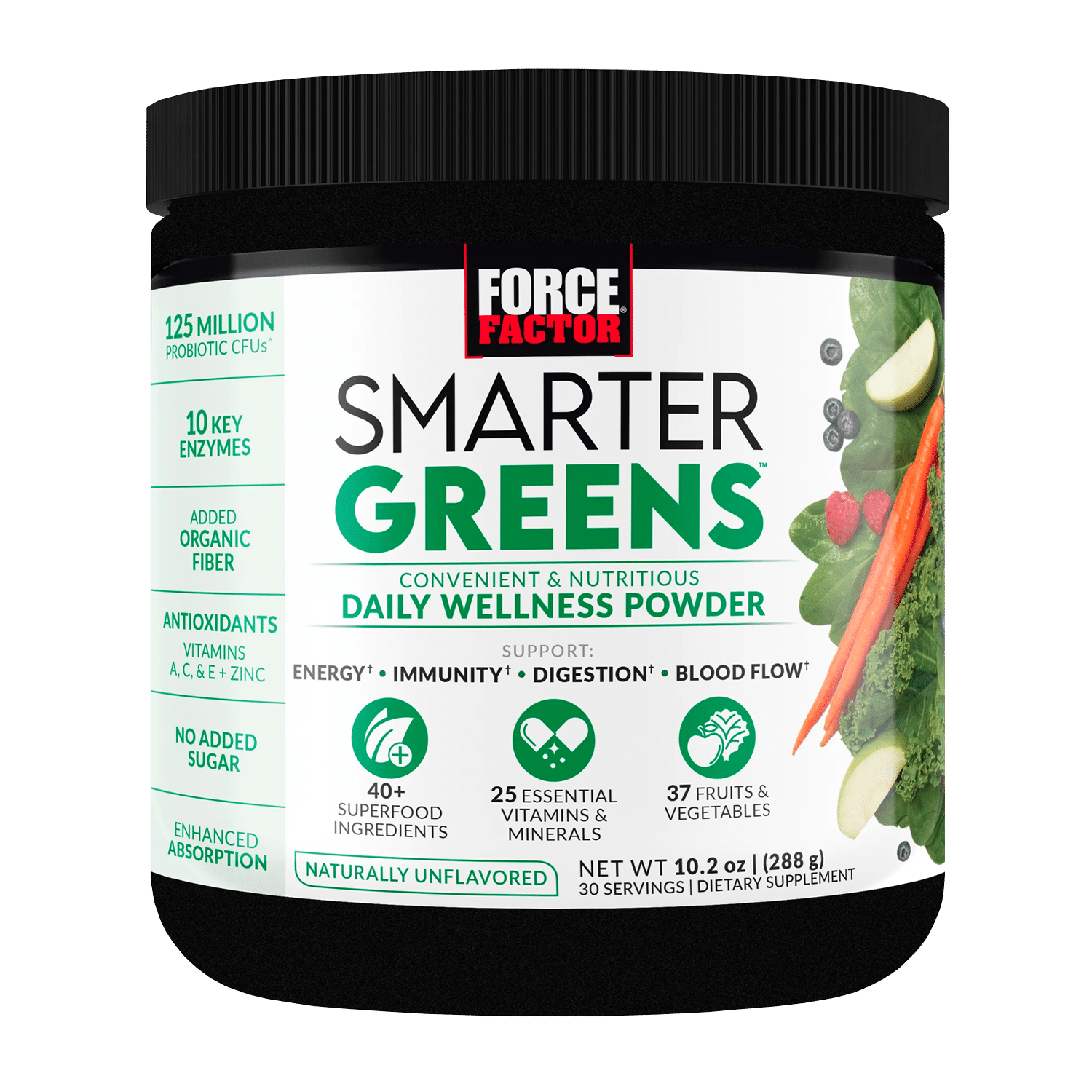 Force Factor Smarter Greens Daily Wellness Greens Powder, Superfood Greens Supplement, 30 Servings