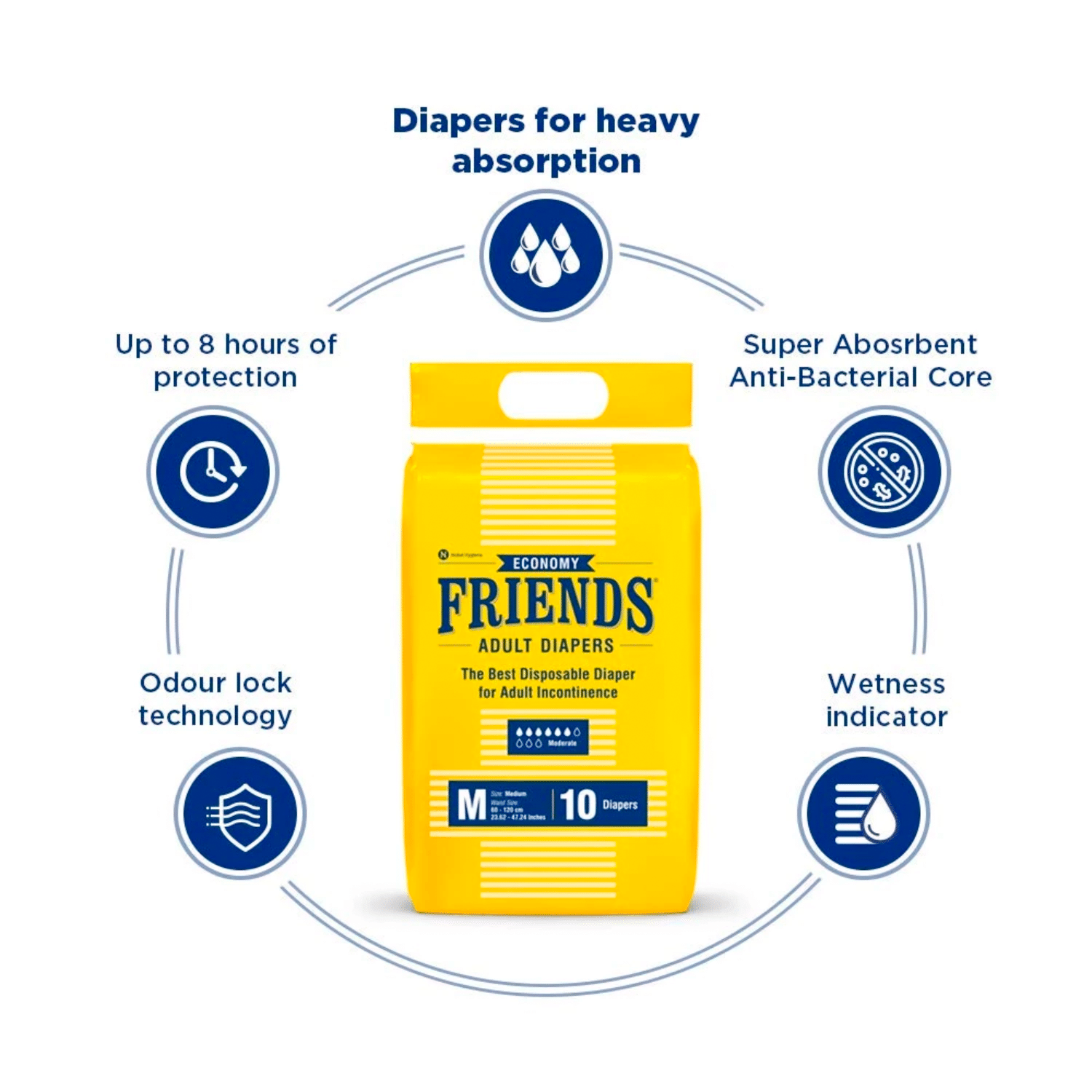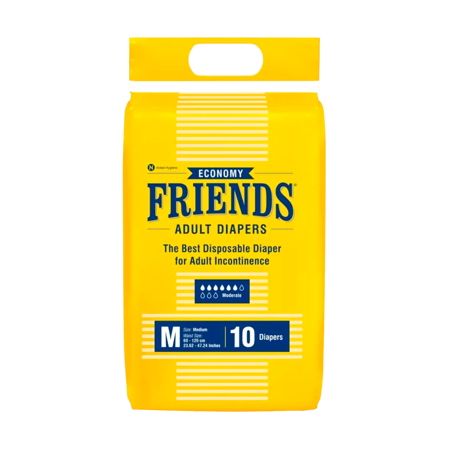 Friends Economy Adult Diapers Tape Style – 10 Count (M) Waist 27.56- 49.21 Inch